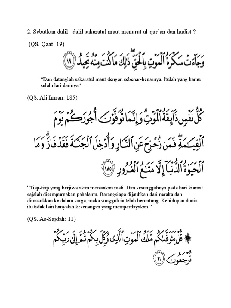 Inilah ayat tentang sakaratul maut Berikut ayat tentang dahsyatnya sakaratul maut yang disampaikan Allah SWT dalam Al-Quran. . SAKARATUL MAUT DETIK-DETIK YANG MENEGANGKAN LAGI MENYAKITKAN Oleh Dr Muhammad bin Abdul Aziz bin Ahmad AlAli Kematian akan menghadang setiap manusia. Simak jugasakaratul dan ayat tentang sakaratul maut